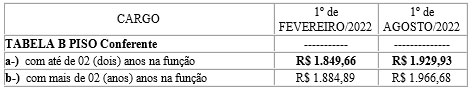 TABELA B - PISO CONFERENTE: As atividades destes compreendem na conferência de mercadorias. Salário mínimo normativo no valor de: