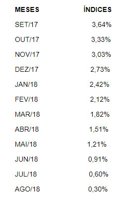 de 3,64% aplicado sobre os salários vigentes em setembro