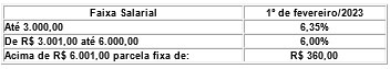 de forma escalonada, de acordo com a faixa salarial discriminada
